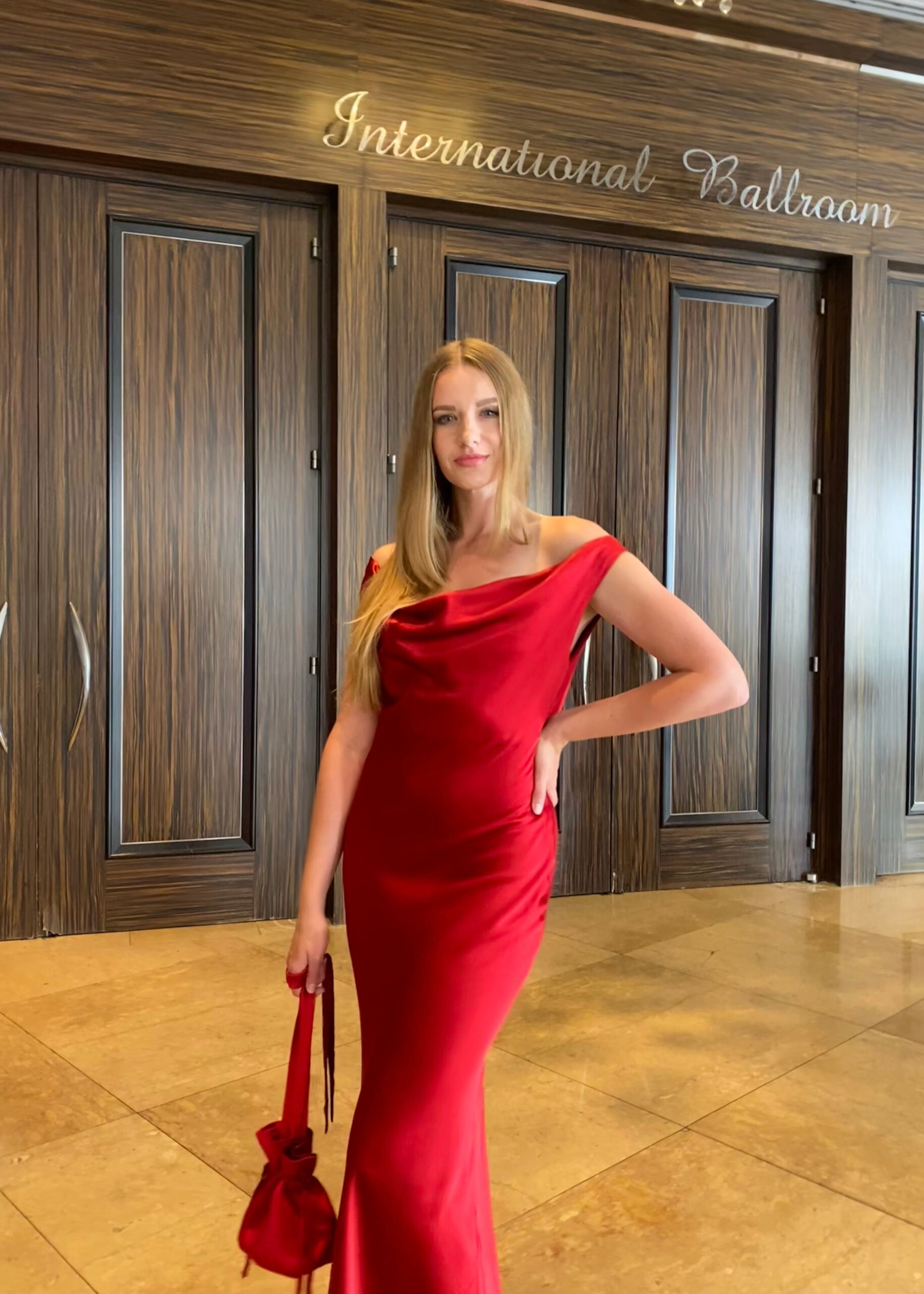 No matter what happens,as a woman,you have to be strong! Wearing the Sannio.S Azalea Silk Bias Gown,growing up,be a relaxed woman!